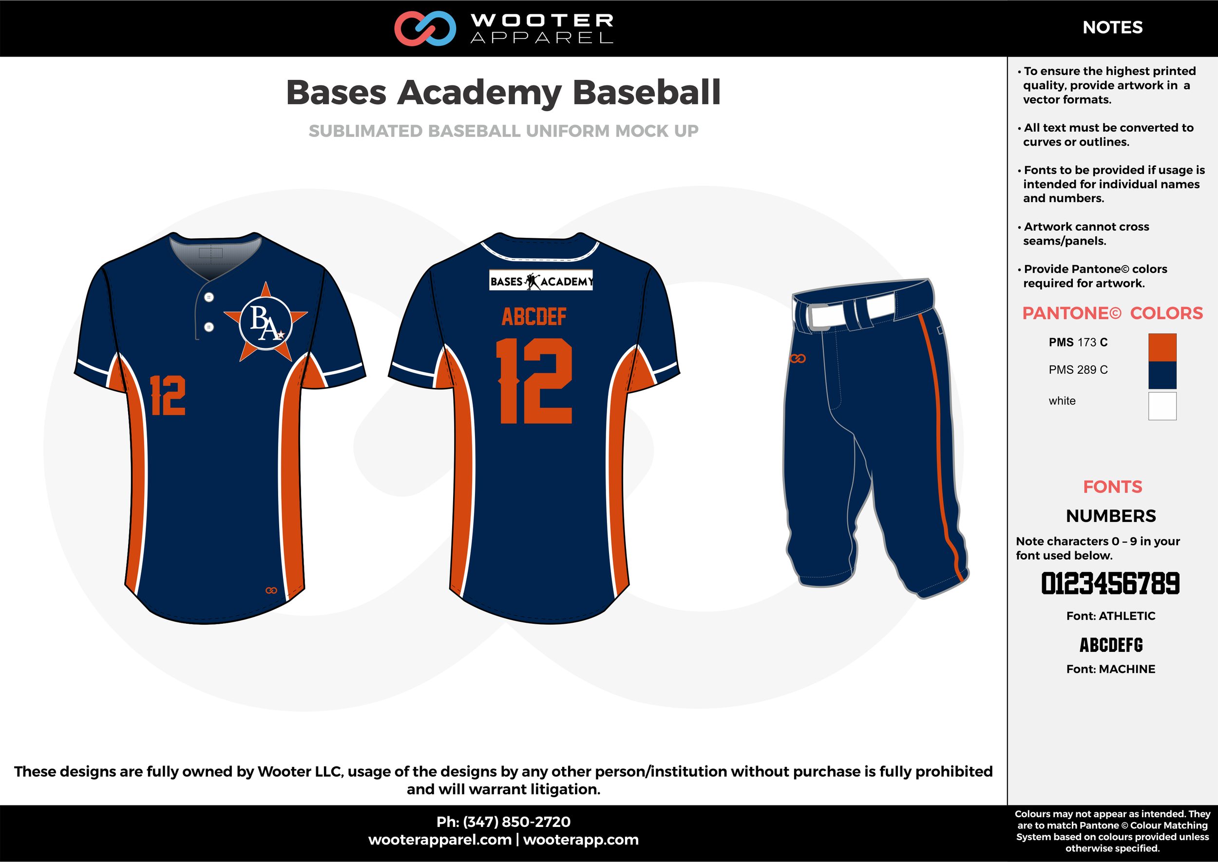 BASES ACADEMY BASEBALL orange blue white baseball uniforms jerseys pants