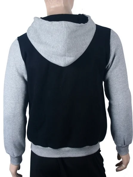 The two-tone hoodie features custom embroidery to capture a distinguished look.